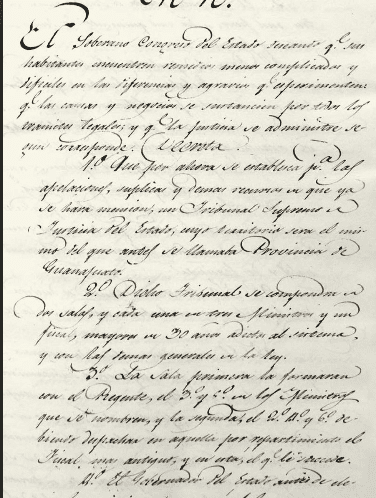 Decreto no. 10 que crea el Supremo Tribunal de Justicia de Guanajuato.